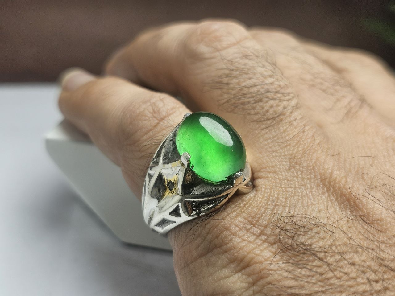انگشتر نقره جید برمه اصلی