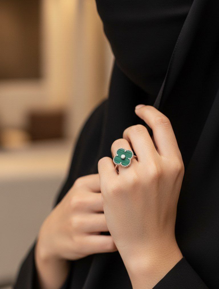 انگشتر نقره زنانه ونکلیف با نگین مالاکیت سبز اصلی