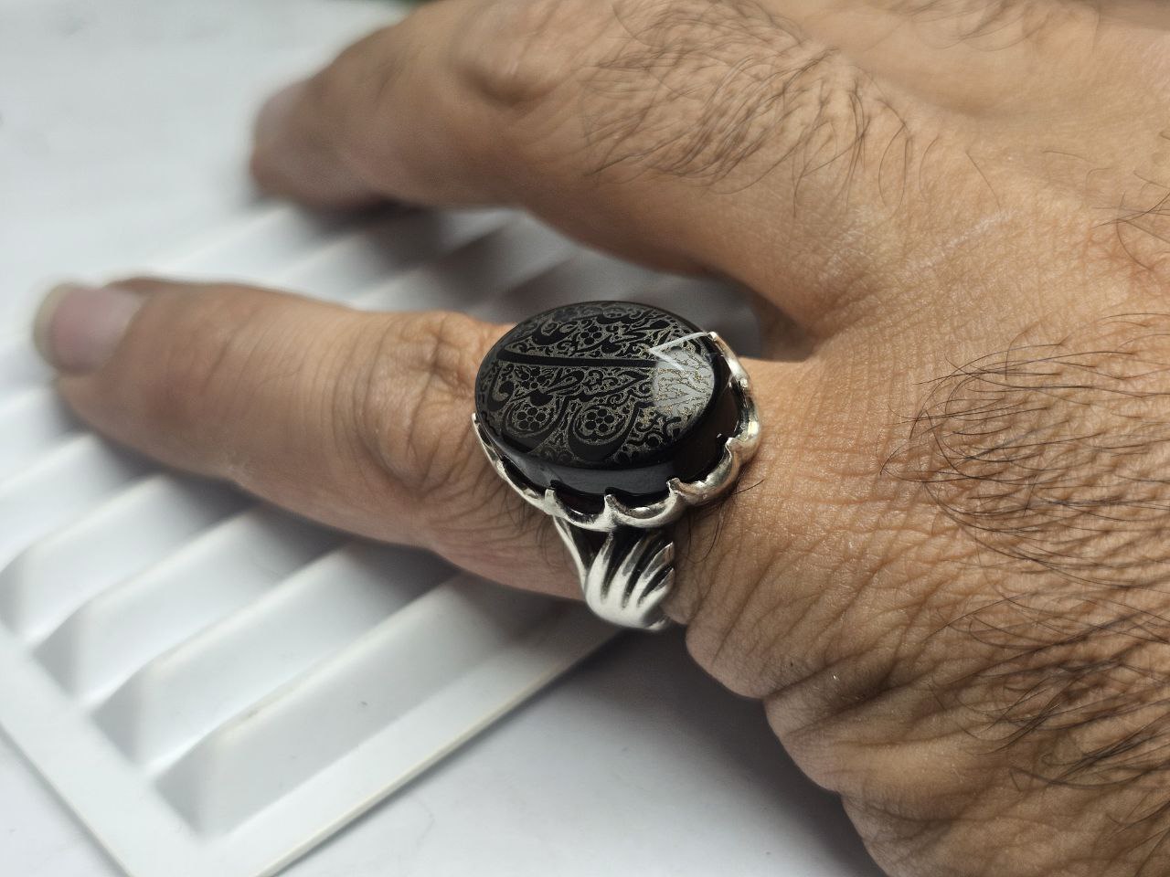 انگشتر نقره عقیق مشکی خراسانی اصلی