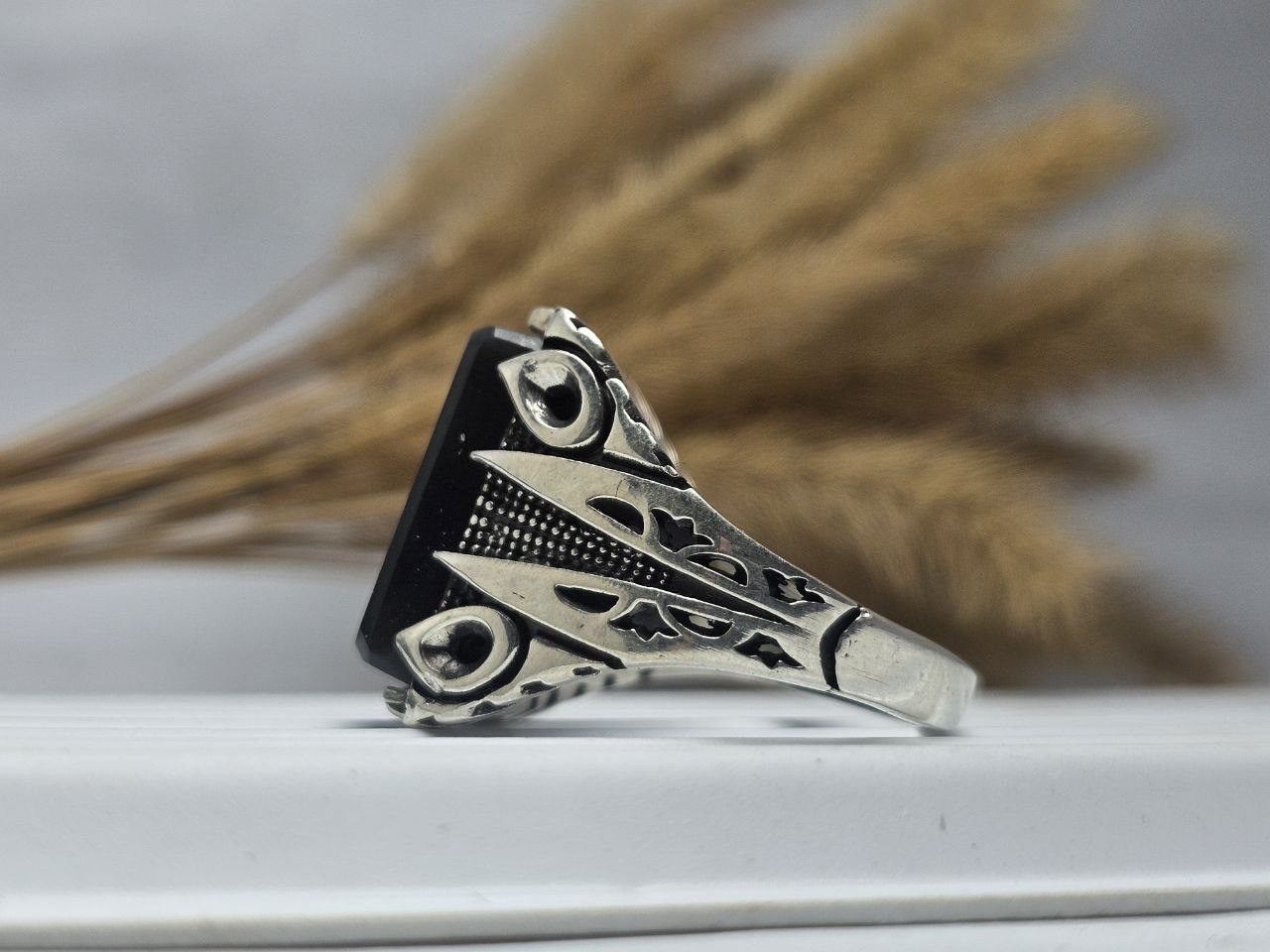 انگشتر نقره عقیق یمنی مشکی چهارگوش اصلی