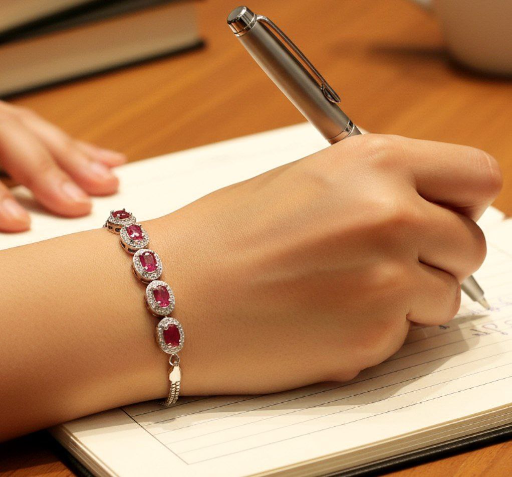 دستبند زیبای زنانه ۵ نگین یاقوت قرمز اصلی