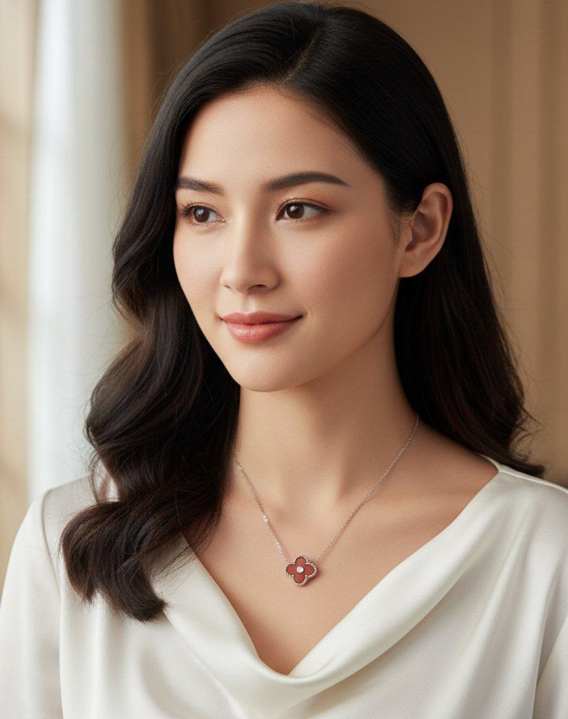 مدال توگردنی نقره ونکلیف عقیق قرمز