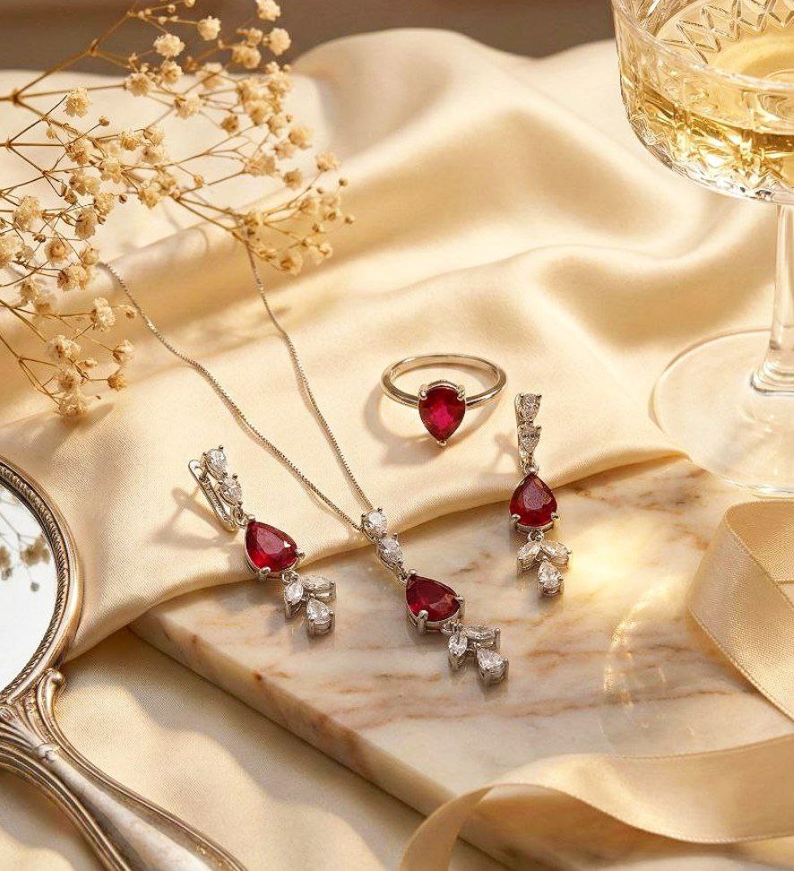 نیم‌ست نقره زیبای یاقوت قرمز آفریقایی اصلی